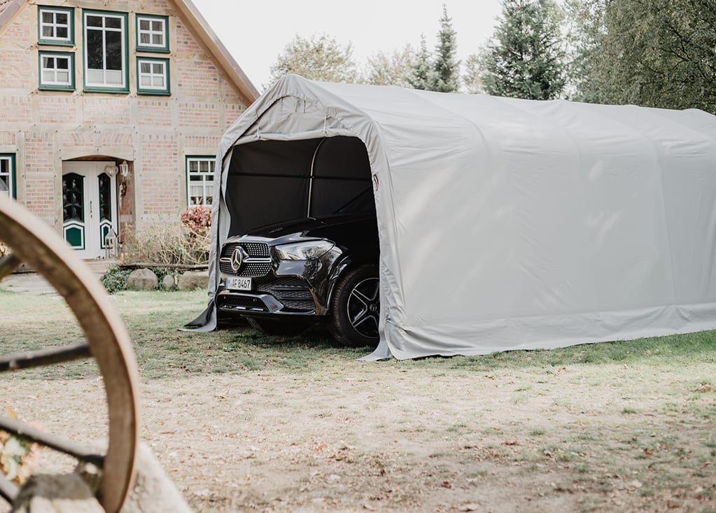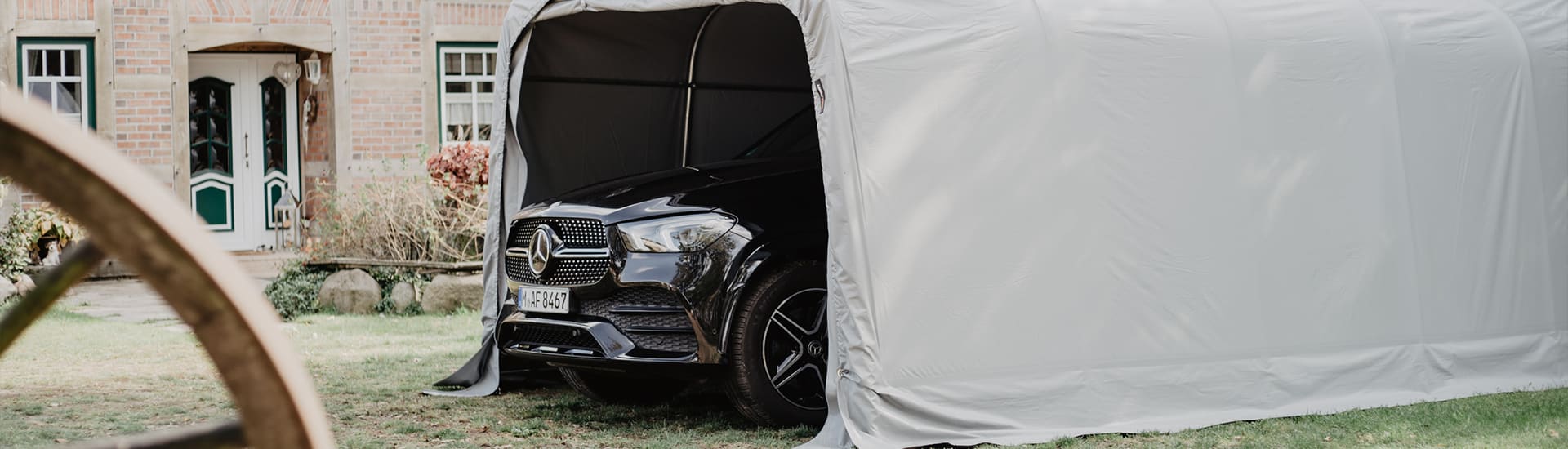 Ci sono molte ragioni per acquistare una tenda garage e la scelta è ampia! Dai un’occhiata alle linee Professional e Wikinger. Non sei convinto della stabilità? Non preoccuparti: offriamo anche kit anti-tempesta, che forniscono alla tua tenda garage un ancoraggio al suolo ancora più saldo, per esempio, con robuste cinghie di tensionamento. La tua auto sarà così completamente al sicuro!